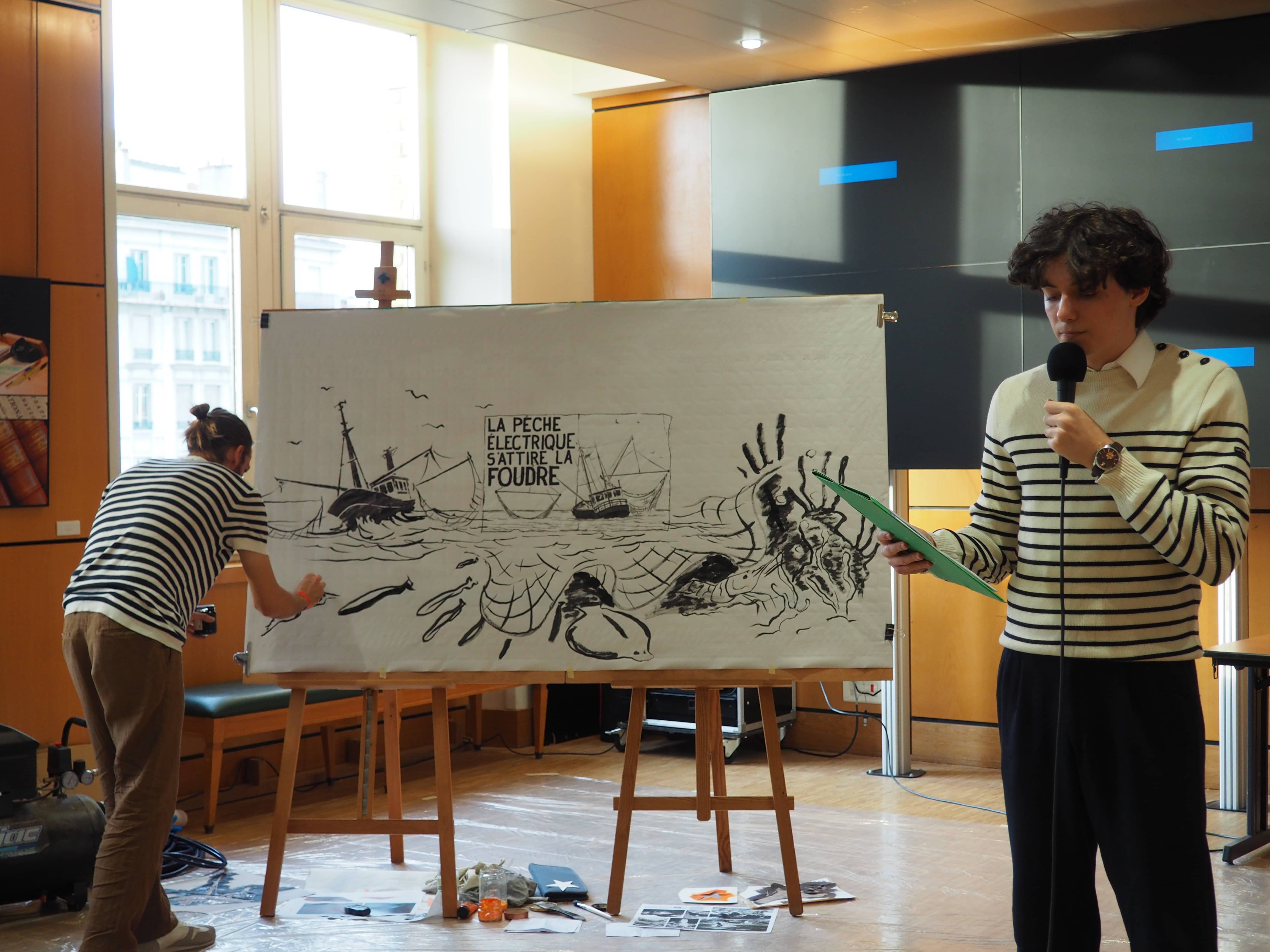 Avec : Salomé FAUVEY, Thibault BOURGIN, Hugo GENEVE, étudiants du Collège de droit et Antoine GANZHORN, artiste-illustrateur.